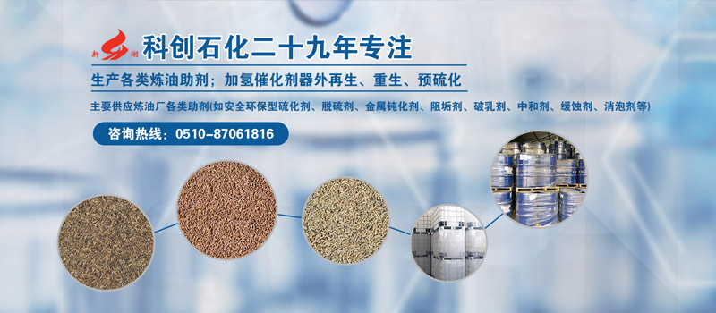 江蘇科創石化有限公司生產和銷售《油田-煉油》化學品(助劑,添加劑)。主要供應煉油廠各類助劑(如脫硫劑、金屬鈍化劑、阻垢劑、破乳劑、中和劑、緩蝕劑、消泡劑等),客戶遍及中國主要煉廠及化工企業和部分油田,培育了廣泛市場網絡格局、以其優異的產品質量和售后服務、嬴得了良好的市場信譽。公司同時對再生催化劑(或新劑)進行器外預硫化處理,增加了客戶的選項。目前受用戶委托已預硫化50多種加氫精制催化劑4500多噸投入運行。